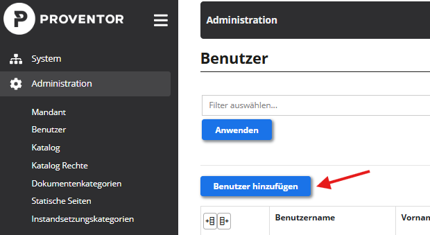 Im Administrationsmenüpunkt Benutzer (Menüpunkt: Administration / Benutzer) finden Sie eine Auflistung aller im System vorhandenen Benutzer, unabhängig von ihrer Mandantenzuordnung.
